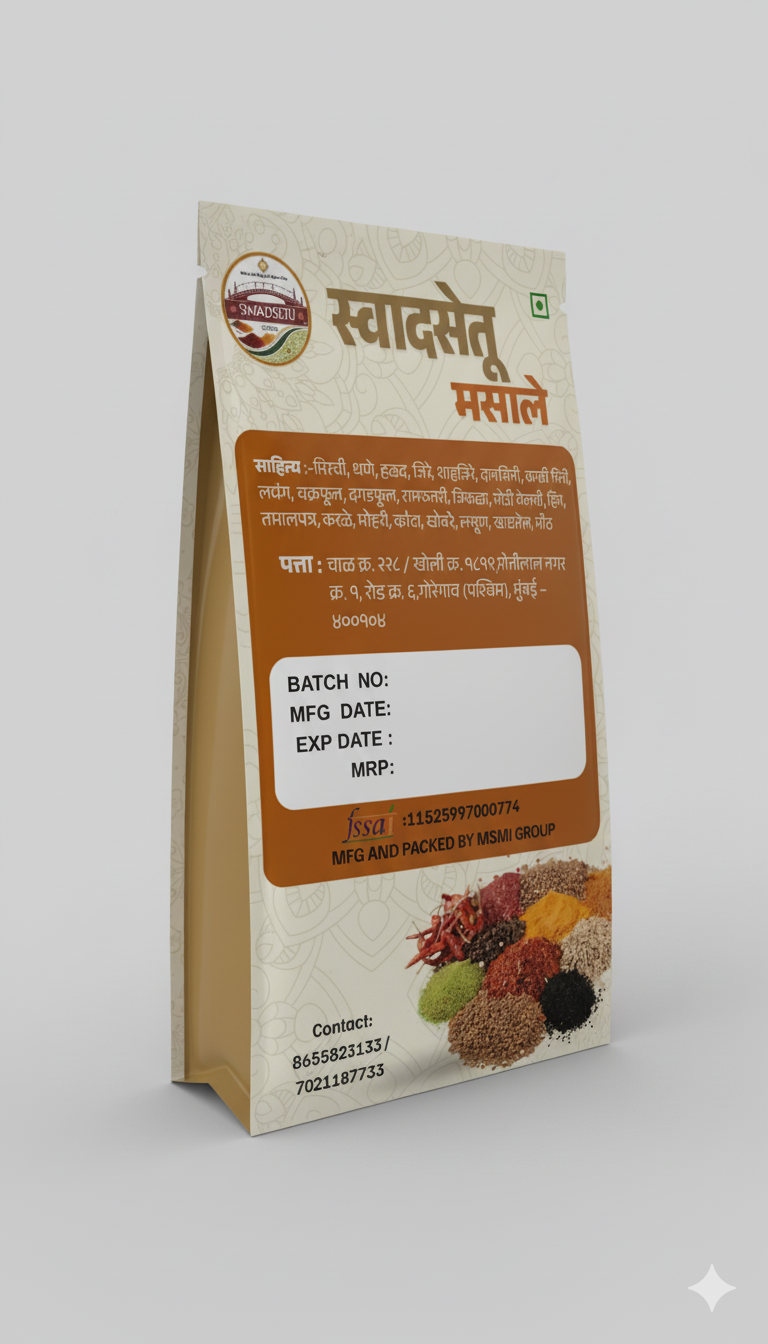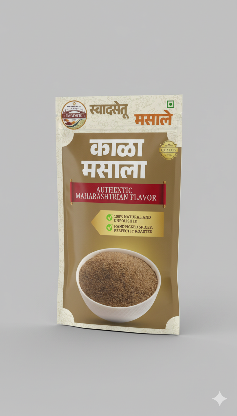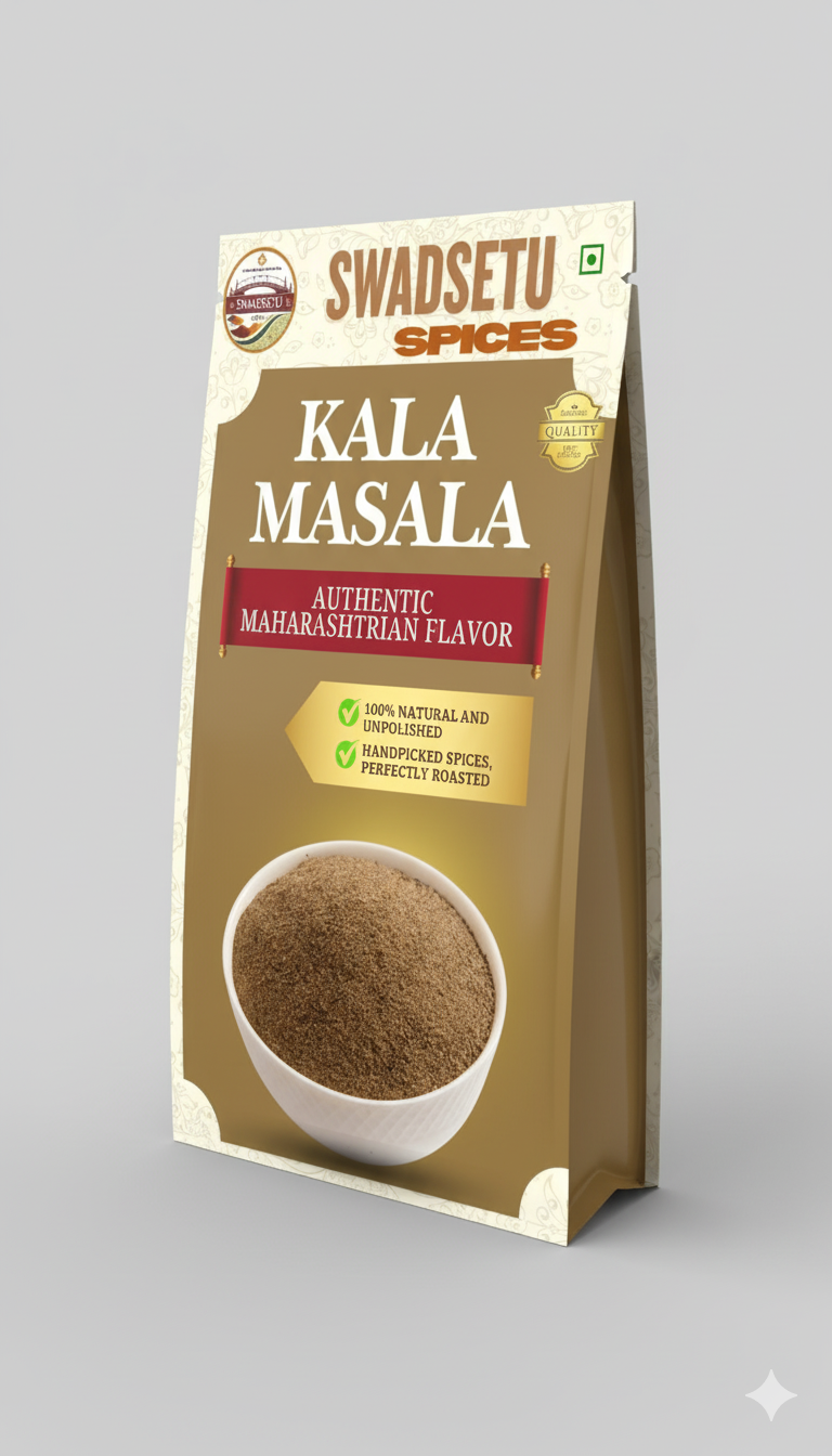 Bring home the authentic taste of Maharashtra with Swadsetu Kala Masala – a traditional spice blend crafted with perfectly roasted and handpicked spices. Its rich, smoky aroma and deep earthy flavor make it the secret ingredient that elevates every Maharashtrian dish.