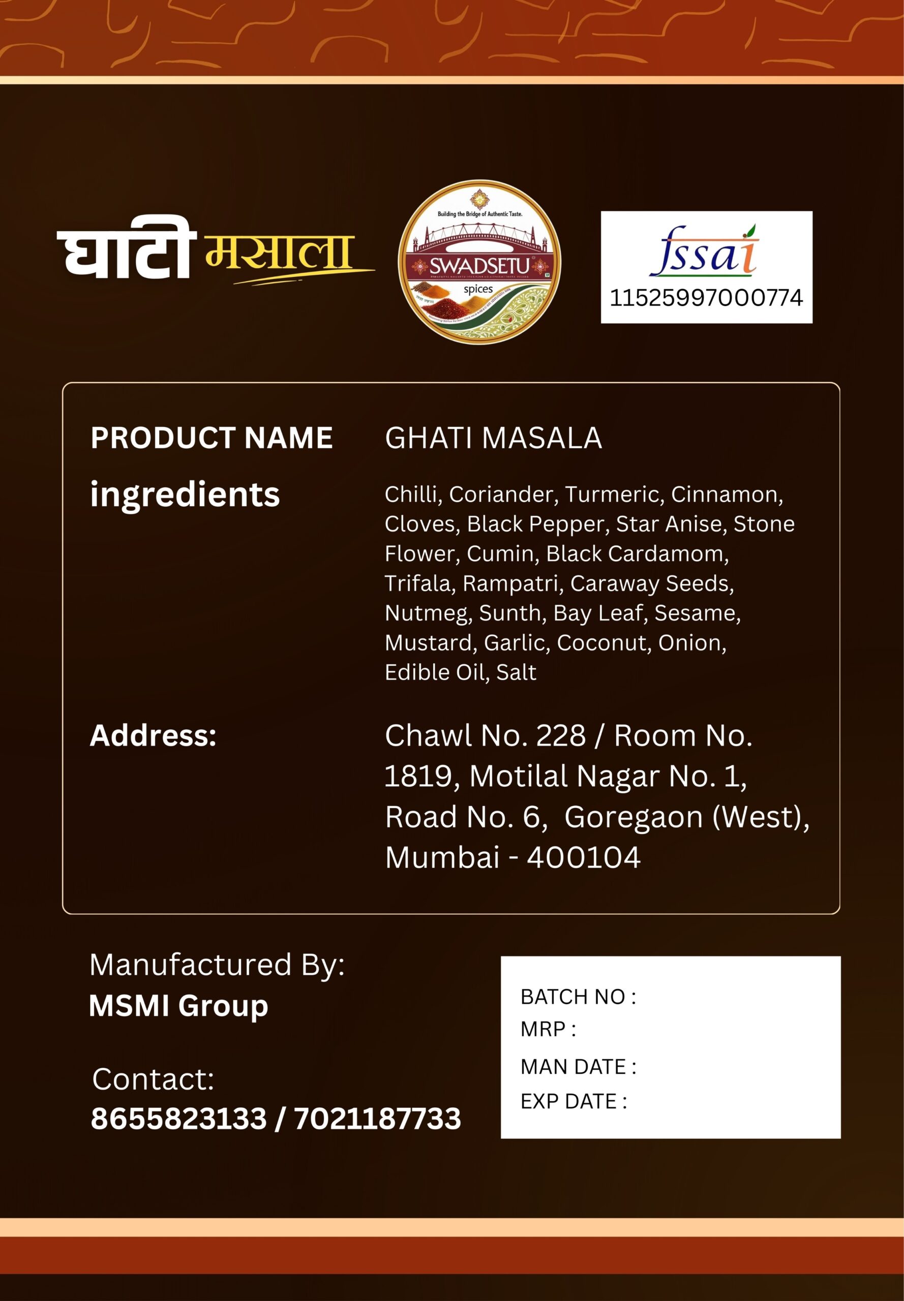 🏭 Manufactured by: MSMI Group, Goregaon (West), Mumbai