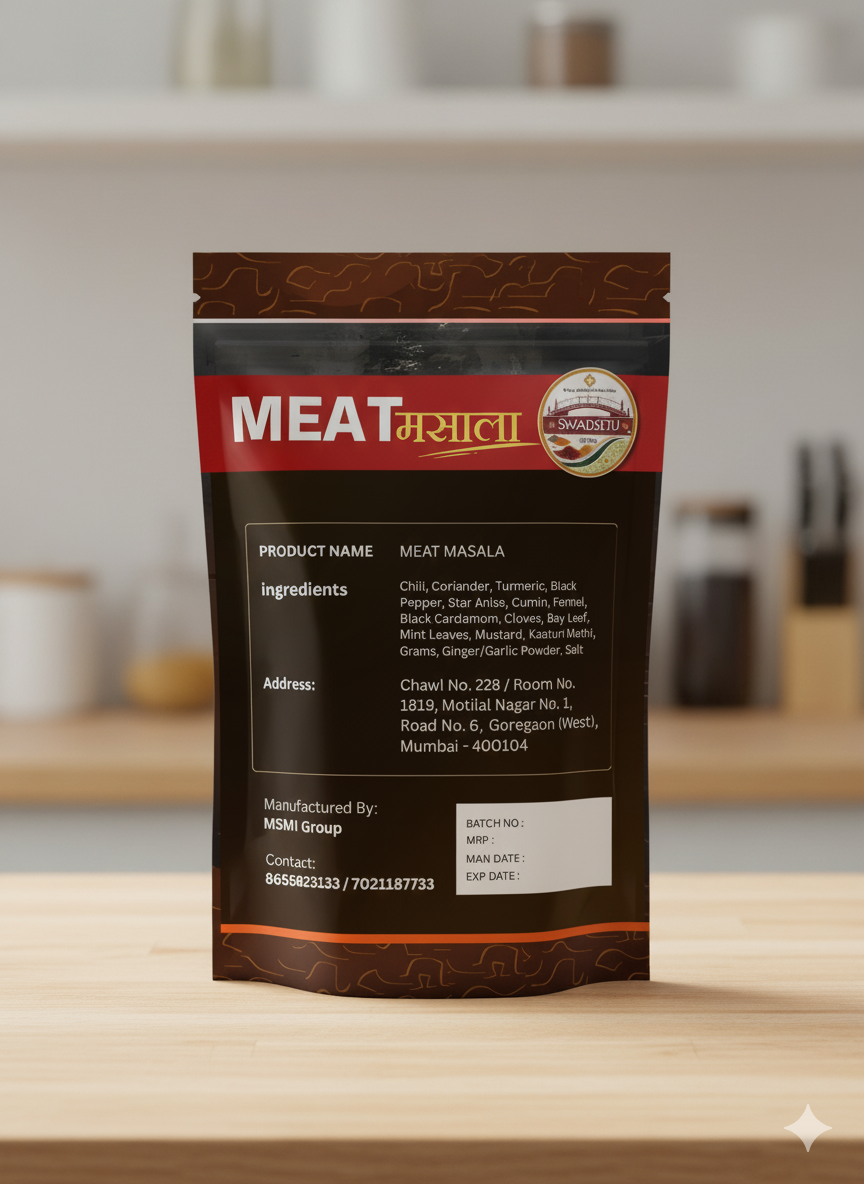 Whether you are preparing mutton curry, chicken gravy, or slow-cooked meat delicacies, Swadsetu Meat Masala enhances the natural taste, giving your dish a restaurant-style richness at home.