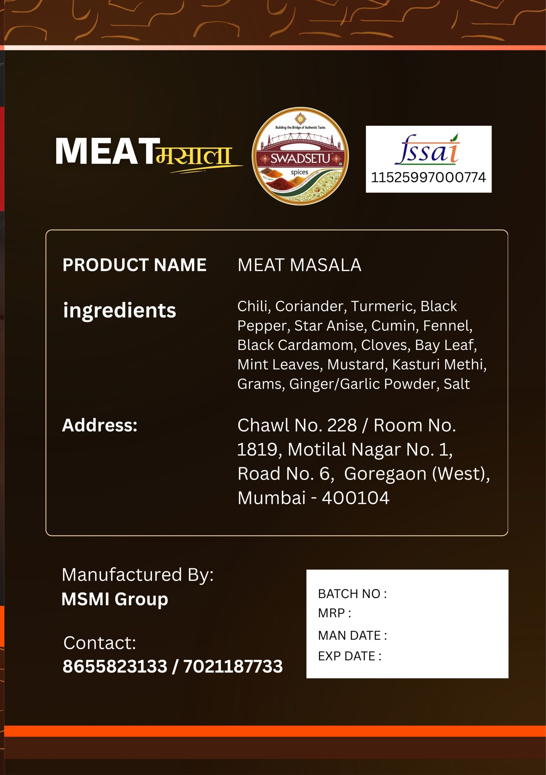 • Product Name: Meat Masala